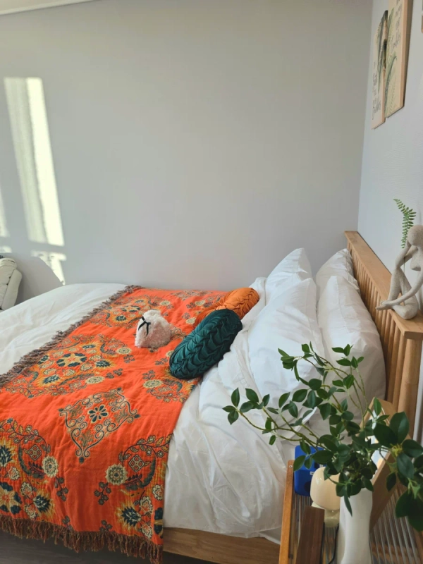 늘 새롭게 저희 새늘 Stay는 세련되고 편안한 보헤미안 스타일의 인테리어 숙소입니다. 3단 등받이조절 리클라이너 소파와 스툴,도서들도 비치해 두었으며, 오징어게임 체험인 달고나도 준비해 두었습니다. 이동식 구글스마트 TV로 Youtube, Disney+, NETFLIX, TVing 시청이 가능합니다.일상에서 잠시 휴식 시간을 갖고 싶은 분은 온전히 나만의 휴식을 취할 수있으며 가족과 동료와 친구와 연인과 소중한 추억도 만들 수 있을 것입니다. 옆 호실과의 소음 차단을 위해 창가에 단열+방염+흡음효과가 있는 보드를 덧댔으며, 겨울철 포근한 잠자리를 위해 거위털 이불과 배게 그리고 전기매트를 깔아두었습니다. 내 가족이 머무른다는 마음으로 힐링과 편안한 감성 공간으로 준비했습니다. - -고성방가 및 밤 늦은소음은 자제 부탁드립니다. -비품 도난 파손은 안됩니다. -반려동물은 허용되지 않습니다. -건물 내,객실 내 금연 구역입니다. -물품 비품 도난 또는 파손시 배상 책임 있습니다. -밤늦게 고성방가 및 소음은 자제해 주세요. -재활용 쓰레기는 지하 1층(엘리베이터 옆)에 버려주세요. B1 Recycling Center: 재활용,쓰레기,음식물 버리는 곳 ⛧ 신발은 벗어주세요 욕실화 및 실내화는 실발장 안에 비치되어 있습니다. -체크인 시 차 1대 당 14일까지 무료 주차 가능하며, 그 후는 유료입니다. -주차창 지하3층~지하1층 -객실 내 소음 차단 구비 -현관 안전 장치 -여성 안심 귀가 # 각종 편의 시설 안내 •1층: 편의점 2개, 무인 펫 용품점, 약국, 코인세탁실 치킨집,맥주집, 카페 •2층: 농협 은행(해외송금 가능), 미용실 ,치과, 셀프 세탁실& 무인 카페, 무인 점포, 클리닝 서비스, 식당, 노래방(G동) 등 •3층: 브런치 레스토랑(유료), 한식 뷔페(유료) •4층: 피트니스(1일 이용료 만원, 평일 am 06:00~pm 11:00, 주말 및 공휴일 am 09~00~pm 08:00), 사우나 (현재 운영중단), 루프탑 수영장(5월말~9월 운영), 관리사무소, 라운지(독서 및 업무 공간), 야외 테라스, 카페 등 C동 골프(3층) & 헬스(4층 ) 개인 P•T -지하철역까지 도보 5~8분 소요 # 한라웨스턴파크에서 연세대 국제캠퍼스까지: ● 지하철로 10분 달빛축제공원역(4번출구까지 535m) 승차->캠퍼스타운역 하차(2번출구에서 연세대까지는 도보1.4km)+광역버스 9201번 승차=> 연세대 하차(총 45분 소요) ● 자동차로 10분 # 한라웨스턴파크에서 인천대학교까지: 지하철 5분: 달빛축제공원역 승차 =>인천대입구역 하차+도보1.4km 또는 버스:16번,8번=>인천대 정문에서 하차 (총 39분 소요)