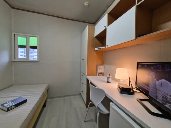 * 교통비 절약의 완성! 지하철 초근거리+버스정류장 앞 위치 * 깔끔한 공용시설과 개인 프라이버시가 완벽한 각방시설. * 화장실 관리없이 편리한 미니룸&샤워룸 1. 공통시설. - 인터넷, TV, 냉장고, 책상, 의자, 침대, 거울, 서랍장, 옷장. 2. 미니룸 - 창문방(내창/외창) / 넓은 방 / 샤워룸 3. 원룸 - 단독 냉난방 및 대형평수(2인실 가능) - 창문방과 대형 2인실이 마련되어 있습니다. 4. 대형원룸. - 에어컨용량이 실내평수보다 큰 것으로 설치 공동시설. 1. 내부 및 외벽을 방음, 방염 기능이 뛰어난 첨단소재(ALC 벽돌)를 사용하여 쾌적한 주거환경을 조성하였습니다. 2. 완벽한 소방 필증 완비와 화재보험가입으로 입실자분의 안전을 보장하여 드립니다. 3. 전면 대리석타일시공으로 시원하고 안전한 주거공간이 되도록 하였습니다. 4. 공용샤워, 화장실을 여유 있게 설치하여 샤워시설이 없는 룸도 편안하게 이용하실 수 있습니다. 5. 빌트인 드럼세탁기와 일반 세탁실, 인덕션 등 가전제품 6. 옥상 빨래 건조대 7. 공기청정기, 닥트형 에어컨디셔닝으로 깨끗한 실내공기와 확실한 냉난방