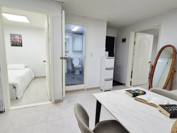 성북구 장위동에 위치해 있고 지하철6호선 Dolgoji 역까지 도보로 10분. 버스정류장은 3분 거리. 주변에 전통시장과 가성비 좋은 식당들이 많이 있어 생활하기 편리하며, 고려대학교와 동덕여자대학교가 멀지 않은 곳에 있어 통학하기 좋습니다. 주변 이웃을 고려하여 밤9시 이후에는 조용한 생활을 부탁드립니다. 쓰레기 분리배출을 꼭 지켜주시기 바랍니다.