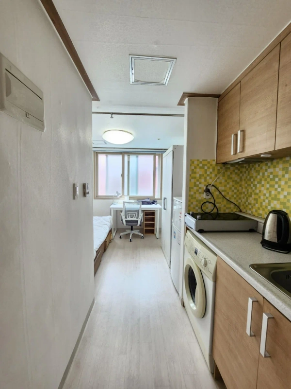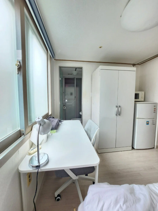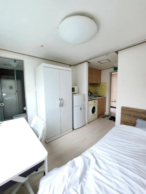 未来韩国——一家专门为国际客人提供住宿的公司。 1) 概述 一座面积为14.8平方米(约160平方英尺)的住宅,距离仁荷大学仅步行1分钟。 它位于校园区域的中心,周围有许多餐厅和便利店,而内部则非常安静。 布局包括房间和厕所,总共1个单人房。 一个非常靠近仁荷大学的单人工作室。 大楼一楼有一家便利店。 这是一个不与任何人共享的私人空间——仅供你或你的朋友使用。 大多数邻居是仁荷大学的学生,所以这一带通常很安全,即使深夜也可以安全外出。 设施: • 吸尘器 • 洗衣机 • 设备齐全的厨房 • 冰箱 • 每个卧室都配备空调 • 加热 • 清洁工具 • 充足的餐具和厨具 • 无线网络 主持人笔记 • 主人住在附近,如果有任何情况可以迅速响应。 • 可以为外国人登记卡申请提供租赁合同。 • 提供英语、日语和韩语的沟通。 • 主持人是一位仁荷大学的毕业生,拥有接待400多名交换生的经验。 2) 入住与房屋规则 • 入住通常是自助入住(非接触式)。 • 您的预订确认后,我们将分享详细的地址和指引。 • 您的门禁码将在到达前一天发送。 • 室内禁止吸烟。 • 不允许养宠物。 • 您可以在入住期间更改门禁代码,请在退房前将其恢复到原始代码。 3) 交通运输 • 距仁荷大学步行1分钟。 • 非常靠近公交车站。 • 乘公交车到胡安站大约需要10到15分钟;公交车大约每5分钟一班。