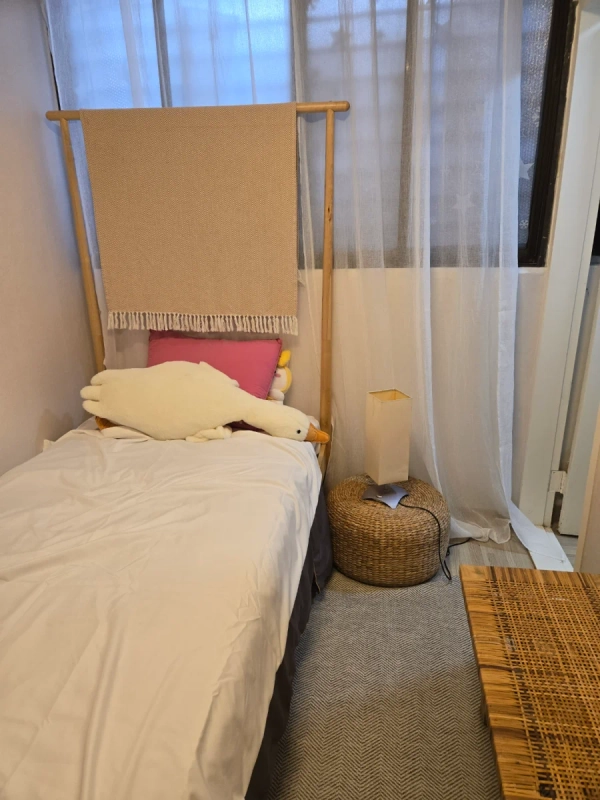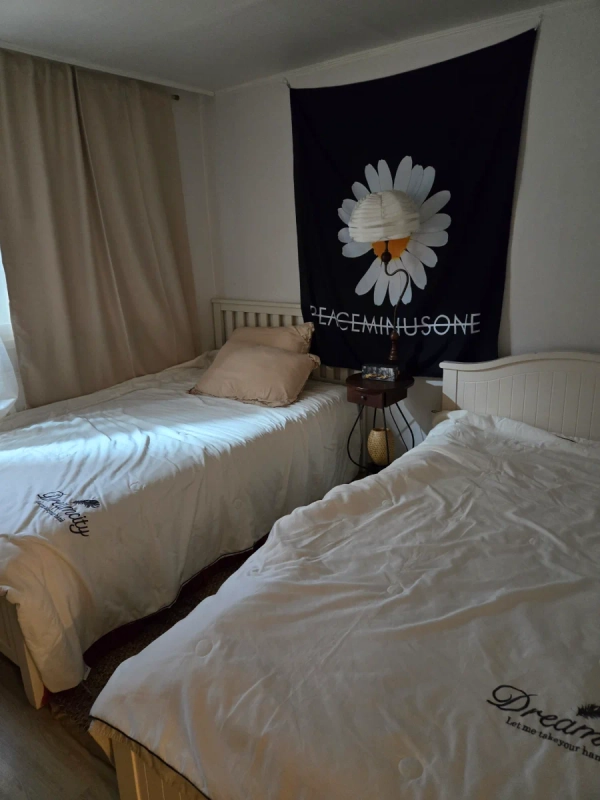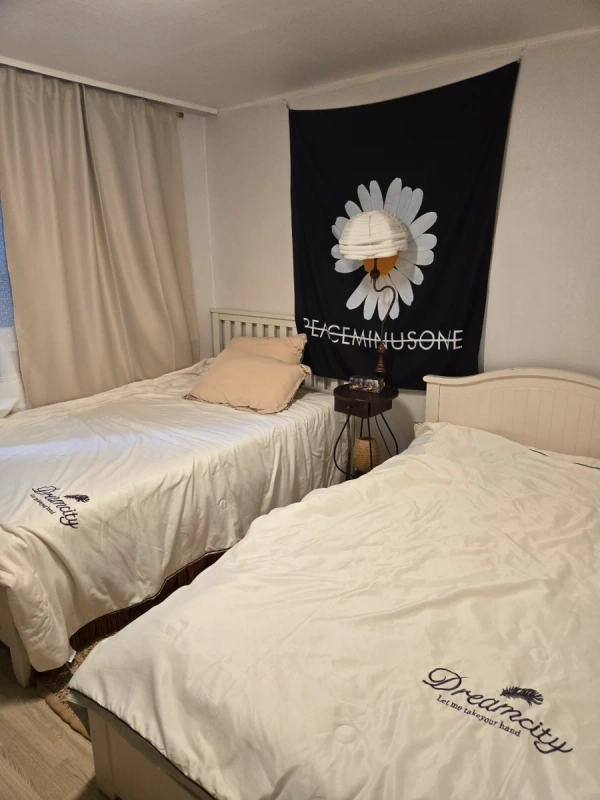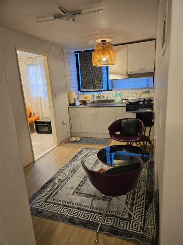 位于首尔江西区登村洞644-41 大日别墅罗洞102号,是舒适的三居室住宿。 地铁**9号线登村站**步行约6~7分钟,非常近, 各种公交线路也可以方便使用。 0 共3个房间和1个浴室**适合2~4人家庭、出差、游客**, 准备了基本家具和生活必需设施,只需简单的行李就可以直接生活。 位于安静安全的住宅区, 靠近麻谷、汝矣岛、弘大等主要地区,生活便利性很强。 – 不允许带宠物。 – 禁止房客以外的访客住宿。 – 请注意噪音,确保安静舒适的生活环境。 建筑物陈旧,隔音可能不完美。 周围的交通和便利设施都比较好。 附近地铁步行6~10分钟,公交车站也在4~6分钟以内,附近有大型超市home plus各种餐厅、便利店等便利的地方。