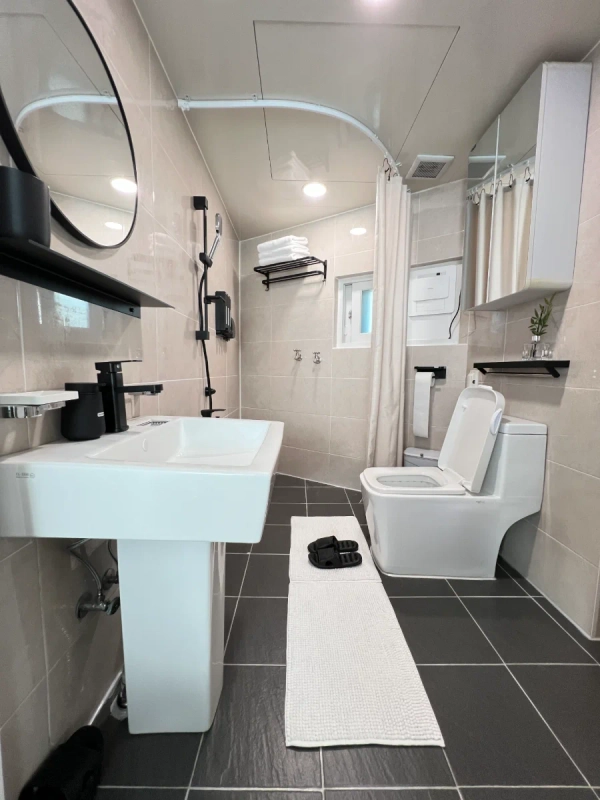 ☀️AURI STAY顾名思义就是"光",是明亮而整齐的感性宿舍。 拥有与首尔森林相邻的住宅区、汉江跑步路线、守护天使圣地路线、K-POP、圣水洞"热门"徒步圈的地位。 ✅ 住宿时注意事项 -宿舍有13.5坪的幽静宽度。 三张双人床,足够6人睡觉, 适合4~5名成人生活的宽敞空间。 - "脱鞋"进入宿舍,提供室内鞋 - 宿舍内绝对禁止使用火器及吸烟及电子烟🚭 (吸烟被揭发时需缴纳高额罚款 200,000 KRW) - 为了下一位嘉宾的舒适空间,不能吃宿舍内的烤肉或鱼(BBQ)。 向主人咨询时,会推荐好吃的烤肉店。 - 宠物不可携带 (违反时征收清扫费) - 禁止染发 - 床上用品类食物禁止摄取 - 除预约人员以外,发现追加人员时每人征收50000KRW - 除了住客以外,访客也要同样增加人员。 (请提前咨询) - "宿舍外部有保安目的的监视器。" - 位于没有EV的2楼。 虽然楼梯不高,但对老弱者来说可能会不方便。 - 卫生间马桶里只扔纸巾,千万不要扔女性用品、湿巾等其他物品。 - 洗衣机使用前请接受主机通知后免费使用。(提供洗涤剂和纤维柔软剂面膜) - 宿舍所有插座的电压为220volt。 - 嘉宾用长安110V-> 220V转换适配器插头 (仅可使用自由螺栓产品。 ) - 建筑物内不可停车/可使用周边公用停车场 - 为了防止虫子流入,请只开放有防虫网的窗户,特别是晚上一定要关好。 - 由于季节性因素和建筑结构特点,外来害虫(如蚊虫、小飞虫、轮虫等)可间歇性发生。 宿舍内准备了定期防疫管理及杀虫剂、驱虫剂,这种自然流入不属于退款理由。 - 晚上10点以后请克制噪音。 ✅️本宿舍适用Mr.Mention特例,登记为韩国人共享住宿合法企业。 ✅本宿舍是获得外国人城市民宿业许可的合法宿舍