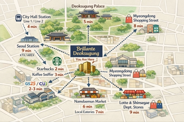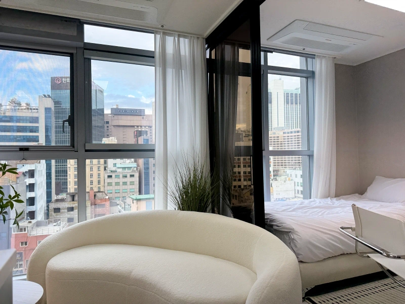 德寿宫Brillante Stay不仅仅是"留守",它还将首尔最深沉、最美丽的生活方式带给出差人员、留学生、文化游客,以及所有想要在市中心休息的人们最好的体验。 ✨️请预约特别的体验。✨️ 🎀最多3人(超级单人床+女王床) 🎀开阔的城市风景 🎀 市中心安静的私人空间 * 入住采用非面对面方式,合同签订后 告诉您使用指南、门锁密码。 - 床上用品是拍照用的 - 最多可使用3人 - 无法提供便利设施 - 避免深夜发生噪音 - 严禁吸烟,包括电子烟 - 发生壁纸、器物破损、物品损坏及污染时 相应费用的损害赔偿请求 - 宠物不可用 * 宿舍类型 全套新建写字楼(2间) 开阔的城市景观 * 租期 至少14天 * 主要服务 超高速Wi-Fi、OTT、个别空调、屏幕 高尔夫球场,健身中心GX室。 IOT三星智能家居解决方案, 提供高端家电 - 星巴克步行1分钟到便利店 - 1号线/2号线(市厅站)OLIVE YOUNG 步行 5 分钟(首尔站,江南,弘大,东大门,龙山) - 5号线 (西大门站) 步行7分钟(汝矣岛,金浦机场) - 仁川机场直达豪华轿车站 6001, 6701 步行五分钟