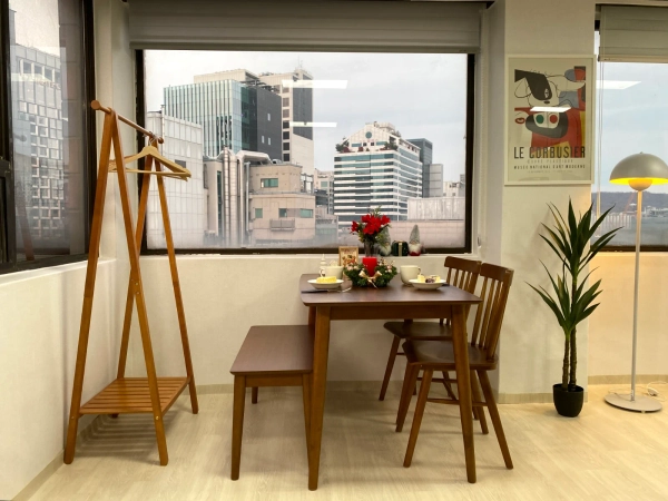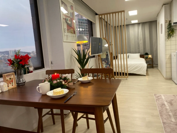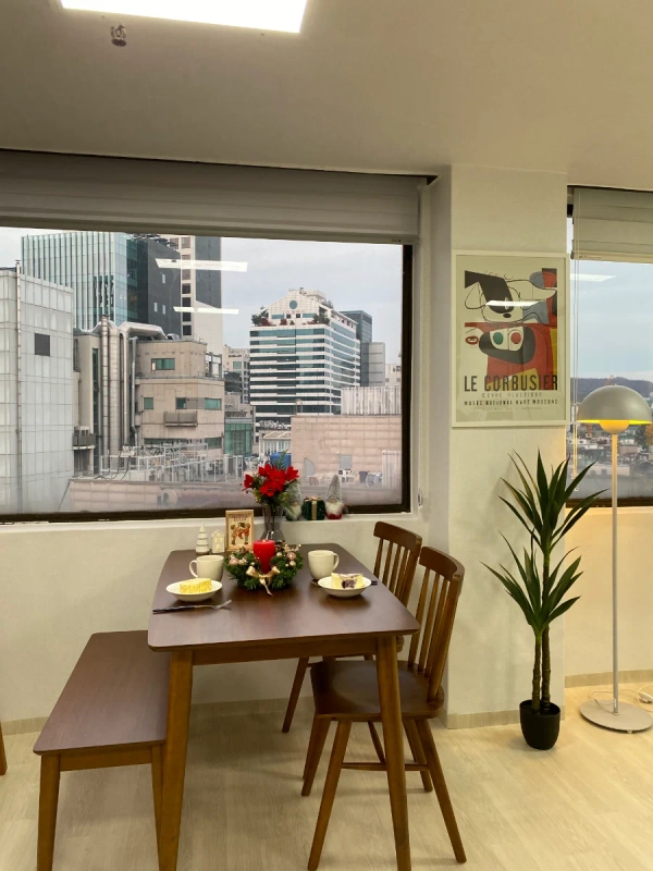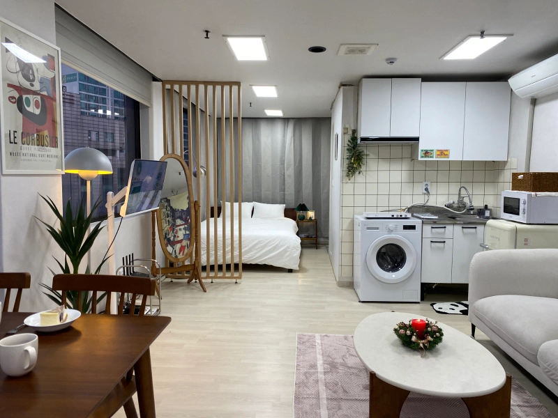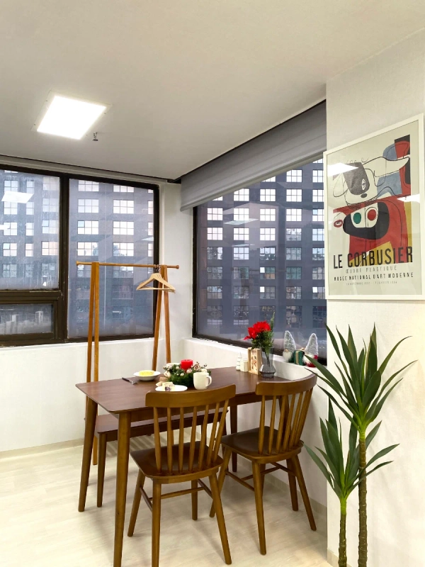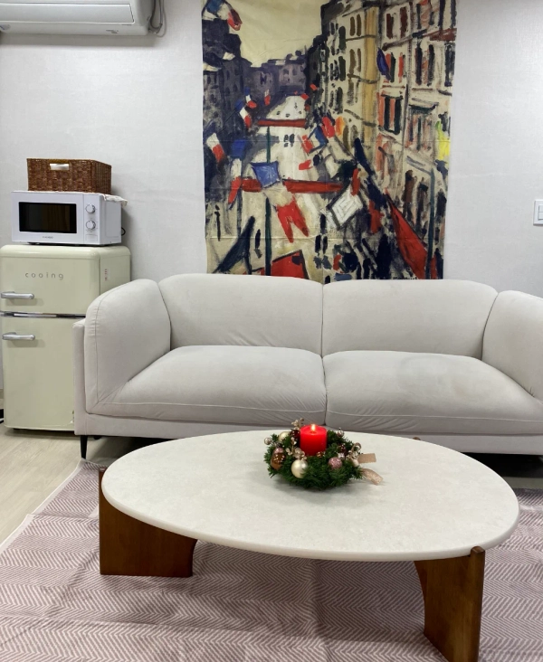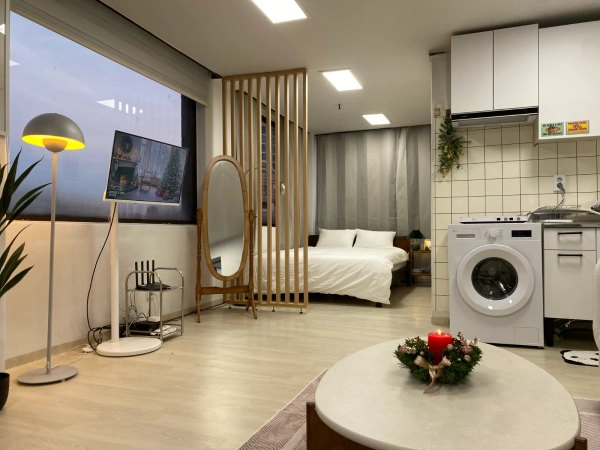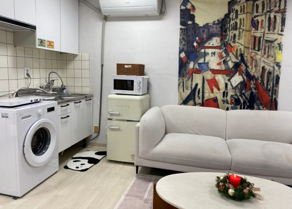 "我是3年来和众多留学生一起工作的资深主持人。 为了对异国他乡生活感到陌生的各位,我会以妈妈般温暖的心悉心照顾大家。 在韩国,为了不孤独,成为坚实的家人,约定只集中于学业的安全舒适的环境。 在弘大和我一起制造珍贵的回忆吧!" -宠物不行。 -客房内禁止吸烟。 -不能进行迁入申报。 -不能做伤害周围人的行为。 步行到家门口就能尽情享受街头表演、各种展示、大创、OLIVE YOUNG、美食店等多种弘大门文化。 2个人可以。 不能吸烟,不能当宠物 -位于弘益大学"想走的路"周边的写字楼。 -餐馆很多,有很多购物和娱乐。 -弘益大学入口站 9 号出口步行 3 分钟,弘益大学步行 5 分钟