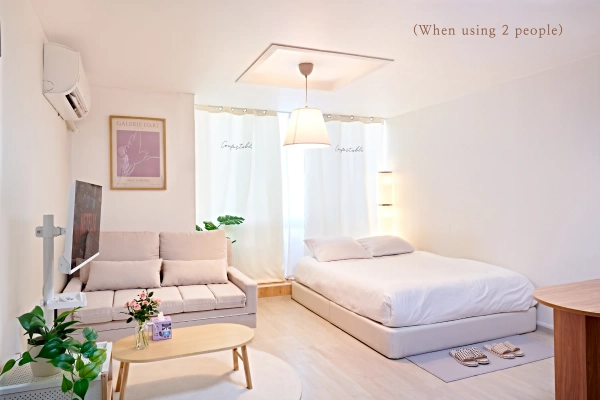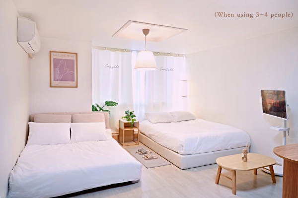 ▫️ 这里是参加k-pop演出的好位置。 靠近汉江公园、首尔塔、崇礼门等位置。 ▫️ 靠近弘大、新村、延南洞、望远洞、京义线林荫道等各种美食街的位置。 ▫️ 各种美食街、K-POP Square、苹果商店、书店、OLIVE YOUNG、DAISO、硬币洗衣店、硬币练歌房、医院、药店、主面是自助兑换机等位置。 ▫️ 从弘益大学入口站步行1分钟。 ▫️ 乘坐梨花女子大学、西江大学、延世大学巴士只需10~15分钟。 ▫️ 便利的交通(2 号线、京义中央线、机场铁路三重临站地角、机场巴士等) ▫️光化门广场出租车16分钟,公交车30分钟(271路、273路、602路、603路、7101路、1004路) 🔸电梯,通过所有楼层的监控录像,保障女性和家人安全住宿。 🔸互联网+Wi-Fi、智能电视(收看YouTube、Netflix及其他OTT服务) 🔸大床,大床,大床(最多4人用) 🔸冷暖气系统(像暖炕一样的地面暖气系统) 🔸冰箱,电磁炉,微波炉,电水壶 🔸餐桌,4把椅子 🔸吹风机、衣架、真空吸尘器、抹布、毛绒滚筒 🔸厨房用品(最多4人标准餐具) 🔸入住采用非面对面方式,合同确定后,入住前一天会发送使用通知信息。 ▫️禁止吸烟(1层建筑后面可以吸烟,但在室内吸烟时需支付特别清扫费 会收取费用,但可能会扣除保证金。) ▫️禁止派对(晚上10点以后为邻居克制噪音) ▫️垃圾处理(请放入计量垃圾袋中,扔到1楼停车场入口处(1楼后门使用)。 (回收利用:从地下 2 层分离及废弃可回收物品(地下 2 层,利用货物电梯) (食物垃圾:1楼普通垃圾旁边办公楼的食物垃圾桶使用) ▫️物品损坏、污染时可能会发生损害赔偿费用。 ※ 重要参考事项 🔹洗涤可以在地下的硬币洗衣店进行。 🔹因为是短期租赁空间,不是住宿业,所以不提供浴室及卫生用品。 🔹 浴室用品(牙膏、牙刷、洗发水、护发素、洁面乳、沐浴露等) 🔹 卫生用品(卫生纸、湿巾、毛巾等) 🔹其他个人物品