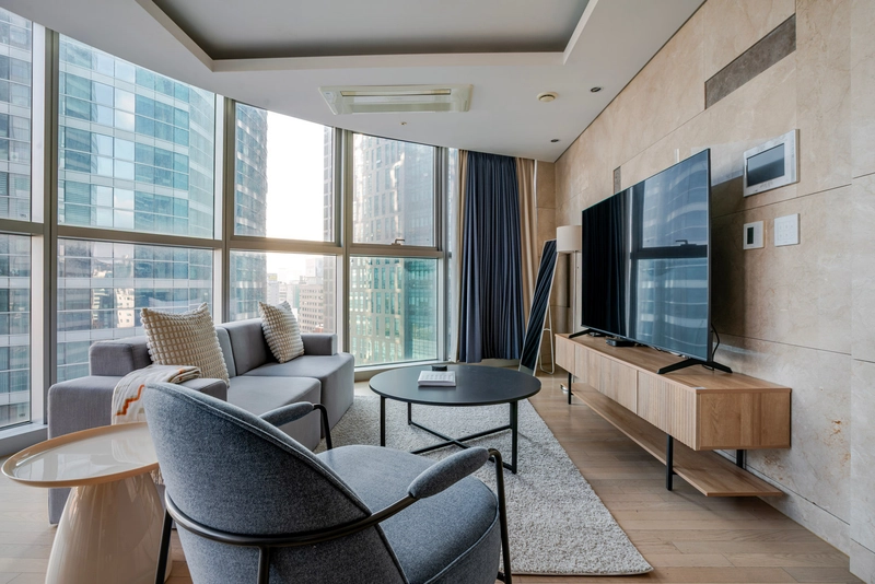 探索首尔的最佳之处,入住东嘉洞的这家可俯瞰山景的住宿。 只需一出现,就可以轻松开始入住这家配备齐全的蓝地风格住宿,它拥有设备齐全的厨房、高雅的起居室以及我们专门的现场支持服务。 专为您的需求设计 这套两卧室住宿内配备了精美的家具、设备齐全的厨房、智能电视和高端无线扬声器等设施。 理想地位于首尔,您也会发现外面有很多值得喜爱的地方。 当您准备放松时,您会高兴地发现每个蓝地卧室都配备了高品质的床垫、豪华床上用品和舒适的毛巾。 我们处理一切,让您只需到场即可开始生活。 这家蓝地住宿提供灵活的租赁选项,允许您预订一个月、一年或更长时间。 我们非常自豪地确保展示的每一张照片都是在我们自己的单元里用实际家具拍摄的。 尽管如此,我们经常更新我们的装饰和家具布置,这可能与图片中的有所不同。 停车仅对注册居民开放,需要提前注册。 某些文件可能需要用于注册,请联系大楼管理部门。 此外,停车费可能根据公寓的不同而有所不同,有些建筑可能仅提供机械停车。 废物处理: 搬家前,请确保所有垃圾都已妥善分类和处理。 食物垃圾必须与一般垃圾分开,并放置在指定的容器中。 请注意,不当处理或剩余的食物浪费可能会导致额外收费。 请在离店时将食物废弃物处理卡留在单元内。