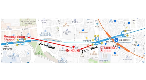📍 位置与周边 – 首尔市中心 🏙️ 首尔之心 🚇 距忠武路站(3号线和4号线)步行2分钟 这次住宿位于首尔市中心,交通便利,靠近主要景点。 附近景点包括: 明洞,乙支路,钟路 南大门市场,东大门 首尔站 南山,首尔塔 南山杜勒吉(步行道) 🏯 南山韩屋村、殷贤市场和钟路食品巷步行仅需5分钟,是体验韩国文化和当地美食的理想之地。 您可以欣赏到南山和首尔塔的美丽景色,该地区非常适合早晨或傍晚散步。 🌁 安静但充满活力的区域 位于一条安静的小巷中,确保您有一个平静的住宿体验。 在我们大楼附近,您将找到: 便利店 咖啡馆 受欢迎的当地餐厅 🍽️ 食品配送应用程序在该地区广泛使用,使得在住宿地点享受美食变得容易。 尽管位置中心,这个小区晚上还是安全安静的。 🚇 交通运输 忠武路站(3号线和4号线)距离这里2分钟路程。 明洞、东大门、南山和时尚的乙支路步行只需10分钟。 公交车站和地铁入口非常近,可以快速到达: 主要旅游景点 首尔的其他关键区域 这个地点非常适合观光和商务旅行。 🏠 关于住宿 🆒 一个宽敞舒适的空间 🛏️ 一张特大号床 适合最多2位客人 🛁 浴室设施包括: 淋浴 吹风机 基本淋浴用品 即使不带很多个人物品,你也可以舒适地入住。 🏙️ 这栋建筑位于商业区,所以晚上很安静。 🆒 由于整个房间仅供使用,因此几乎没有噪音或投诉问题。 ⚠️ 重要提示 住宿在一楼,没有电梯。 然而,优越的地理位置、美丽的景色和便利性超过了这个小不便。 🧺 设施与提供的服务 仅提供基本设施(短期租赁政策): 基本家具 厨具和餐具 冰箱,微波炉 洗衣机 🚿 提供吹风机 🖥️ 智能家居功能 智能照明与语音音乐控制 免费无线网络 有线电视 谷歌音乐扬声器 📺 提供智能电视(guests:可登录自己的办公时间账户) ℹ️ 重要信息(短期租赁通知) 这是一处短期租赁住宿,不是酒店。 ❌ 不提供每日清洁服务 ❌ 入住/退房协助服务不可用 客人应独立管理他们的住宿。 仅提供基本的家具和设施。 我们恳请客人在入住期间保持空间清洁。 🤝 与客人的互动 📞 您可以通过短信联系我们 韩语对话:极客1213 首尔南山停留 微信:首尔南山停留 经理可以使用翻译工具进行沟通,即使你用自己的语言发消息。 🚨 如果出现任何严重问题,经理可以在20分钟内前来协助。