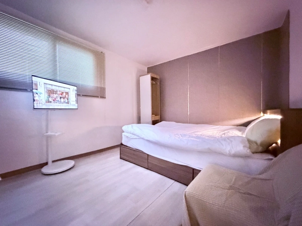 首尔宿舍最大的魅力就是真正适合居住的生活圈。 市场、便利店、地铁、咖啡厅、餐饮店都步行1~5分钟。 位于首尔市松坡区芳荑洞的温馨住宅。 从松坡渡口站步行5分钟,位于安全的平地住宅区 🚶♂️松坡渡口站步行5分钟 汉城百济站步行5分钟 🚶♂️ 公交车站步行4分钟 🛒 打开宿舍门出去就是便利店和咖啡厅(30秒) 🍜 芳荑市场步行3分钟 🎢临近美食店较多的松里团路、乐天世界、乐天百货商店、水族馆、首尔天空瞭望台、石村湖、奥林匹克公园、百济儿童博物馆、蚕室棒球场、峨山医院。 **松坡区上班族、公考生、考生、大学生、旅客都是生活便利的位置和环境。** -卧室1:Queen床位1,32英寸智能电视(个人账号登录),免费WiFi,全身镜, 衣柜,照明,沙发,吹风机,收纳柜,双人餐桌,2把椅子,梳妆台 -厨房:冰箱、煤气灶、微波炉、咖啡壶等 -房间市场(徒步3分钟)有硬币洗衣房。 -卫生间改造,干净利落 -上下两个台阶的半地层,采光很好,是明亮舒适的房子。