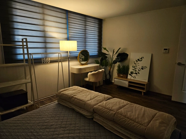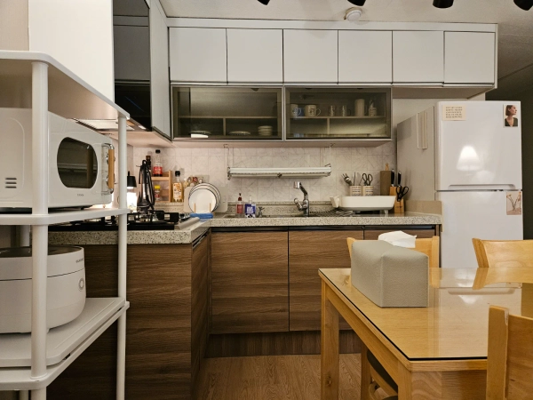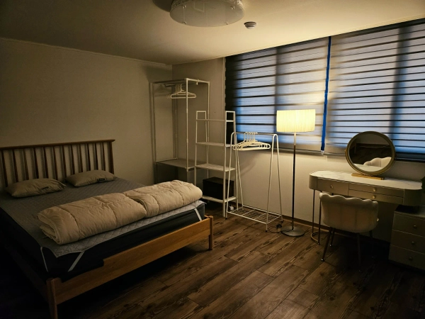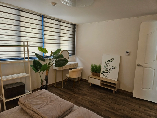 大楼内提供免费停车,并且我们提供带有密码门锁的自助入住服务 :) ▶ 卧室1:大号床 ▶ 卧室2:超单人房 ▶ 卧室3:超单人房 65英寸智能电视 优管、奈飞(包含高级账户)、电话镜像(铬),以及基本的有线电视频道均可使用。 1个立式空调,2个遥控风扇 洗衣机和烘干机(组合单元) ✔ 浴室用品 毛巾、洗发水、护发素、沐浴露、洗手液、牙膏 ✔ 其他必需品 吹风机、蒸汽熨斗、吸尘器、拖把、滚筒和基本清洁工具 ▶ 厨房配备有冰箱、电饭煲、燃气灶、微波炉和电水壶。 ✔ 厨房用品 洗碗液,海绵,纸巾,标准垃圾袋(1个提供),常规及卫生垃圾袋,开瓶器 ✔ 厨具 锅、平底锅、刀、剪刀、勺子以及基本的餐具和厨具 ✔ 调味品 烹饪油,酱油,芝麻油,盐,胡椒,糖 随时可以提问任何问题 :) 1. 请在晚上11点以后将噪音降到最低。 2. 宠物不允许进入大楼。 3. 住宿内严格禁止吸烟。 该地区周围遍布所有必要的设施,如超市、便利店和餐厅 :) 这家住宿位于全南国立大学附近。