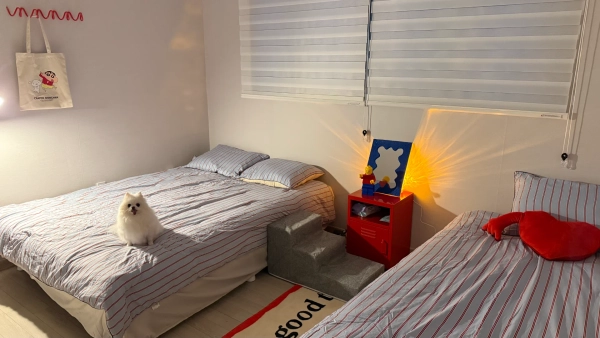 是可以和宠物一起停留的安静温暖的空间。 在旅行中暂时停留的时间也不用一个人留下珍贵的家人。 希望人和宠物都能度过舒适的时间。 在入窗的光和静谧的气氛中,慢慢整理一天,晚上可以和宠物一起纳拉歇,暂时放下日常的节奏。 可以在露天阳台上享受火呆时间,也可以烧烤。 希望人和宠物都能在干净整洁的空间里度过舒适的时间。 入住将以非面对面的形式进行,合同确定后会通过短信通知您。 由于租赁住宅的特性,居住期间的清扫、洗衣服、排出垃圾要亲自进行。 离下大洞、超电动市中心很近是很大的优点。 开车10多分钟即可到达商超、咖啡街、美食聚集区,旅途中没有不便之处。 是能够同时享受安静休息和城市便利的完美位置。