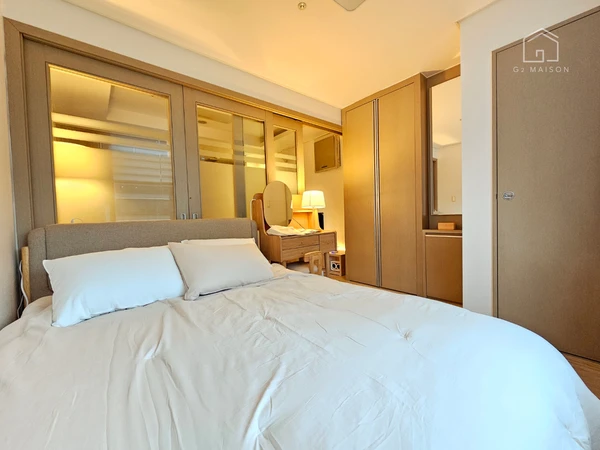 [ARC 서류 제공가능] 최근 리모델링 완료하였습니다 레드와 우드톤의 모던한 인테리어 입니다 침대와 TV는 물론이고 130여가지를 제공합니다. 풀 옵션 7호선 강남구청역 바로 앞입니다 最近经过翻新,内部采用现代红木装饰,这栋房子配备了全套家具,包括一张床、一台电视以及超过130项设施。 位于7号线江南区政府站正前方的一处全功能住宅,既时尚又便利。