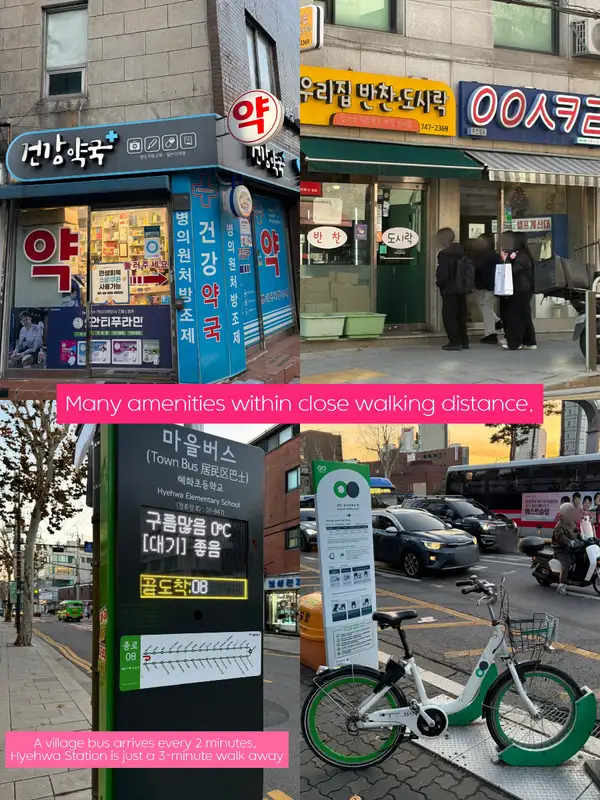🏠惠化站 感性韩屋stay 徒步1分钟:张勉家屋(韩国近代遗产) 车辆 3 分钟:首尔大学医院 车辆 7 分钟:洛山公园 徒步9分钟:惠化话剧七叶树公园 车程10分钟:北村、钟路、乙支路、景福宫、东大门 🌱步行1分钟距离:张勉家屋(近代文化遗产)、小菜店、(cu,gs)便利店、home plus、24小时硬币洗衣房、cleantopia、公交车站 🌱步行3分钟距离:药店、Mega咖啡、The Venti、星巴克、OLIVE YOUNG 🌱步行5分钟距离:邮局、派出所、公交车站、乐天利、巴黎贝甜 🌱步行9分钟距离:地铁4号线惠化站、汉城大学入口站、印花店、CGV、超大型大创、仁川国际机场巴士客运站直达巴士(6011) 🩵新开张🩵 [新开业活动] 提供混合咖啡、无咖啡因咖啡无限续杯。 作为欢迎盒礼物送给预约的人。 ✨韩国风格干练的韩屋装修单间公寓 🚃4号线惠化站徒步9分钟/汉城大学入口站徒步9分钟 🚌 每2分钟乘坐一次乡村巴士时,惠化站1分钟镜头 👼🏻 警察局、邮局附近治安好的小区 🍜 便利店(cu,gs)/home plus/24小时洗衣房/the venti、mega咖啡、星巴克、药店、乐天利等等。 🧑🧑🧒🧒 单人床(身体来吧!! ) / 可收看智能电视(提供Netflix ID,YouTube) 💮首尔大学、成均馆大学、大学路、景福宫、明洞、DDP历史、文化、购物、娱乐等丰富多彩。 公共玄关也输入密码钥匙入住,安全的房子 🌱 智能电视(提供Netflix ID)、冰箱、微波炉、咖啡壶、吸尘器、吹风机、梳子等 🌱 有洗衣机和屋顶,可以洗衣服。 🌱 单独使用屋顶可以举行不喝酒、不吸烟的派对 🌱 互联网/WiFi免费 🌱 烹饪工具(平底锅、锅、多功能烹饪器、餐具套装等) 🌱 洗漱用品(洗发水、沐浴露、牙膏、毛巾) 虽然是个人携带,但不得已的情况请告诉我。 照片中的床上用品是拍照用的 🌱 可使用吹风机、梳子 🙇♀️有电梯,腿不疼。 热水哗哗/暖气很暖和! 🌱安静安全的安心住宅区 🌟Triple临站地角4号线惠化站,汉城大学入口站 坐公交车2分钟之内到达,步行9分钟。 🌟国立中央医疗院车辆10分钟镜头! ❗️指定停车每月 10 万韩元 可以使用周边的公共停车场! 电梯O .
