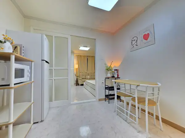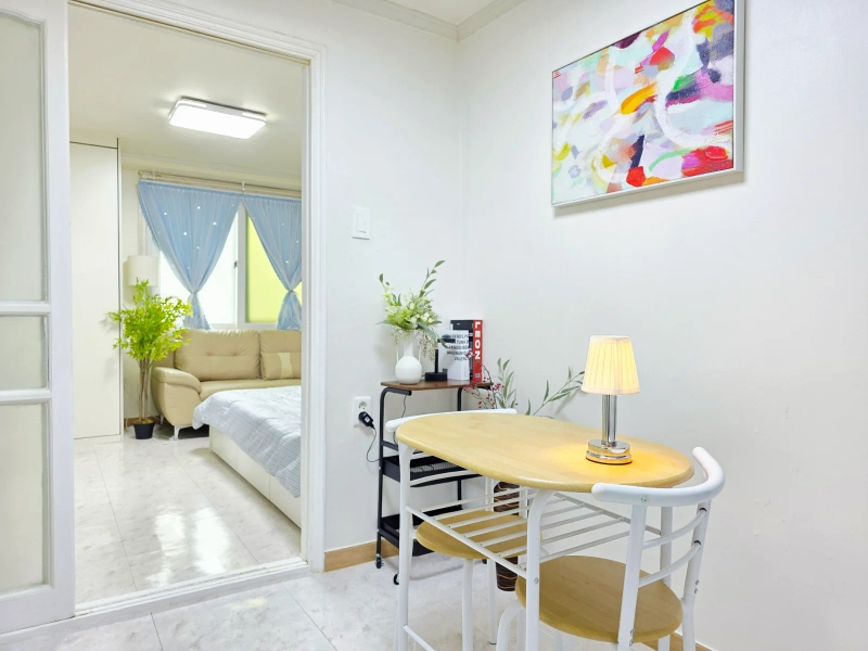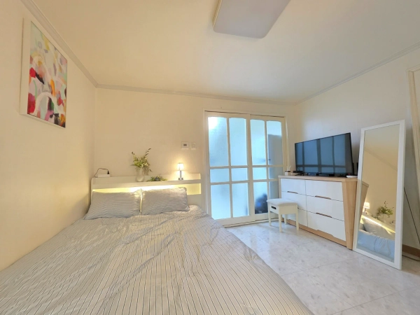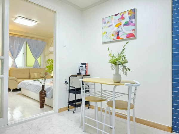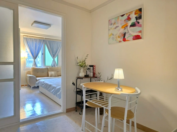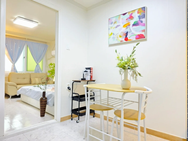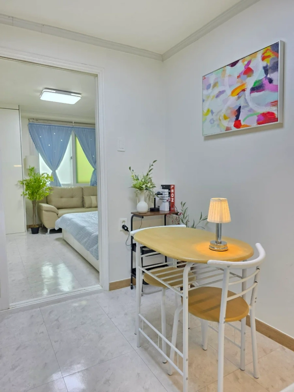 这是一间现代化的1.5室工作室,距离江南区岳山洞9号线的恩珠站仅1分钟路程。 它最近进行了翻新,这个房间配备了一张特大号床、一张桌子、一张舒适的沙发和超快的无线网络。 你可以轻松前往江南的任何地方,比如阿浦京、首尔、蚕室和快线终端,附近还有诸如江南查医院整形外科等医院。 欢迎商务人士、整形手术后的康复者以及国际学生。 🎈 双站区域距离9号线的恩珠站步行1分钟 / 距离2号线的岳山站步行9分钟。 🎈 整形手术、皮肤科、阿普吉豪华街、江南婚礼厅和婚庆店都在附近。 🎈cheongdam、新沙、江南、三成站和快线终端都非常方便到达。 🎈推荐作为参加世界城市博览会展览和展会的参与者住宿。 😊 入住是非面对面的,合同确认后我们将向您发送入住通知。 👌 下午3点办理入住,上午11点办理入住。 💖 最多2人可以使用它。 😎此住宿适用于宠物。 ❤️禁止吸烟(包括电子烟),请参考。 🏠短期租赁不提供毛巾或卫生产品。 🛏️furniture: 女王大小的床(新款),大型内置柜子,带有大储物空间(新款),两张餐桌和一张沙发(新款) 📺电视,互联网:壁挂式55英寸智能电视,高速无线网络。 🔌 电子产品: 微波炉、电水壶、蒸汽熨斗、冰箱、洗衣机、空调、吸尘器和烘干机一应俱全。 👩🍳厨具: 我们为两个人准备了一套餐具、一个锅、一个平底锅、一个刀切板、一个杯子和一个刀叉套装。 🪣 洗衣用品: 洗衣机和洗衣晾衣架已经准备好了。 🎥安全:一楼前门和每层的室外楼梯都安装了闭路电视,因此是安全的。 从"游牧江南"开始在首尔的舒适生活