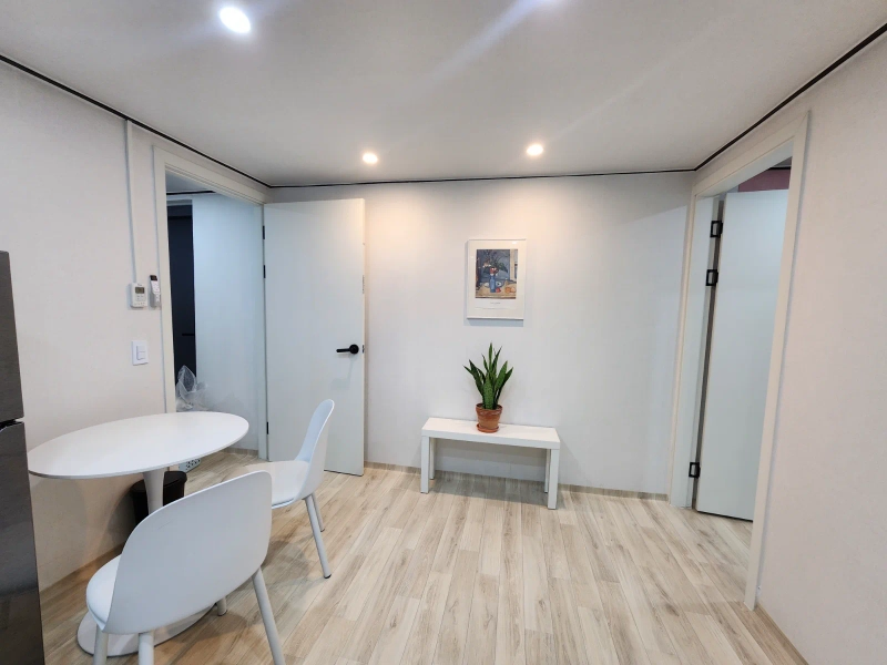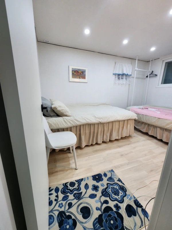 从出入口往下走一个台阶的半地下,是干净温馨的空间。 可供2-3人共享,配有网络等便利设施,生活便利。 最重要的是离孝昌公园很近,很适合散步。 首尔站、弘大、光化门、南大门、东大门等公交地铁等交通便利。 家门口1分钟路程有经过孔德站、孝昌公园站的17路班车站,2-3分钟路程有经过龙山站、江南、南营站等的公交车站。 安静的住宅区,不能夜以继日地喧哗。 从孝昌公园站、孔德站坐公交车3-5分钟以内,从首尔站到家门口有04路公交车(10分钟)。