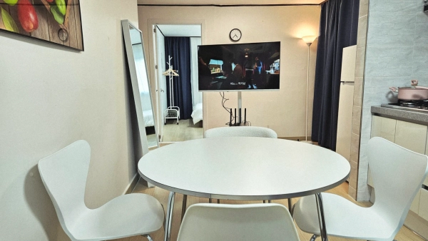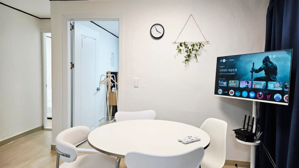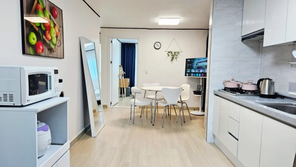 🌿2号线圣水站3号出口步行3分钟,位于热门地点的3层单独住宅两居室(隔壁噪音x) 🌿女王床2张,4人用餐桌/椅子,办公桌,空调,洗衣机,烘干机,智能电视(Netflix,YouTube),冰箱等全套配置 🌿备有厨房用具、洗涤剂等基本生活所需物品 🌿床上用品可以租赁 🌿便利店(30秒)、食材超市、纛岛市场、大创、罗城桑拿汗蒸房等就在附近,非常方便徒步利用汉江、各种咖啡厅和美食店、画廊、快闪店等。 -楼梯间公用部分24小时有CCTV,所以更加安全。 - 通过智能电视可以使用Netflix等多种OTT作为嘉宾个人账户 📍申请合同前请发送访问人数和访问目的信息。 - 最多可容纳4人。 -访客不得住宿, 只能在23点之前访问。 - 入住是非面对面自助入住 - 合同确定后,将在入住前1天发送入住及使用通知信息。 - 入室:下午3点30分开始 退房:上午11点30分之前 (可根据预约情况进行调整) 🚫不允许带宠物 🚭室内禁止吸烟 ♻️垃圾请按照备置的垃圾排放指南分类排放。 -没有电梯的3楼。 -位于圣水洞热门场所练武场路,自然岛盐面包店等 这里是美食店的首选位置,也是观光后回到宿舍最方便的位置。👍 ✅️2号线圣水站3号出口步行3分钟(297米) 2号线纛岛站徒步10分钟 2号线建大站1站 2号线汉阳大站2站 ✅️6013机场巴士7分钟(成员中圣水洞易买得前) 蚕室站地铁12分钟 明洞站地铁15分钟 弘益大学入口地铁 27分钟 乘坐公共交通,去哪儿都方便 ✅️建筑内禁止停车